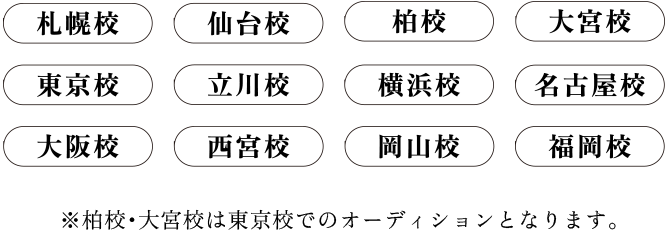 全国の主要都市でオーディションが受けられます。