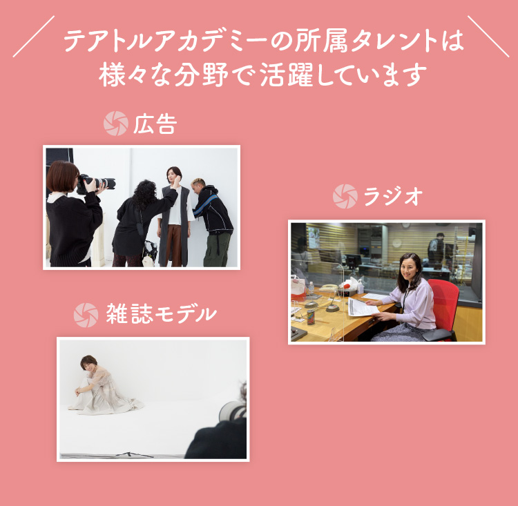応募の時点では自分が何が出来るのか、何がしたいのか、色々と考えが定まっていなかったので、テアトルアカデミーさんは様々なジャンルに精通しているし、色々なものに挑戦出来ると思い、入ろうと決めました。私が偉そうに言える立場ではありませんが、ありのままで各々がお持ちでいらっしゃる魅力を最大限に活かして、頑張って下さい!
