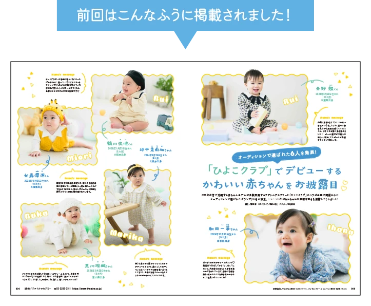 オーディションでは可愛い赤ちゃんばかりで、テアトルアカデミーに入所するのも倍率が高いのに、さらにその中から選ばれたので嬉しかったです。その後グランプリに決まったときは、すごい!と感動しました。