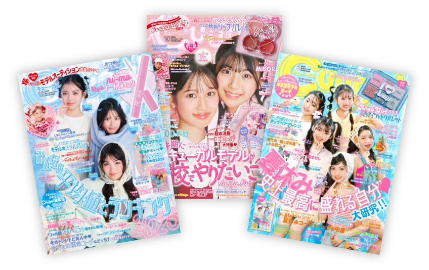 初めての撮影は緊張したけれど、かわいい衣装やメイクをして撮ってもらえた事がすごく楽しくてあっという間でした!同時にもっとCuugalのお姉さん達みたいに可愛くてキラキラしたモデルさんになれるように頑張るぞ!と思いました。