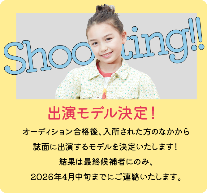 私も憧れのモデルさんたちと一緒にお仕事がしたい!と思って、応募しました。 系統の違うお洋服を着こなしたり、色々な表情ができたりする、みんなに憧れてもらえるようなモデルさんになりたいです!これからも素敵なモデルになれるよう、挑戦し続けるので、一緒に頑張りましょう!